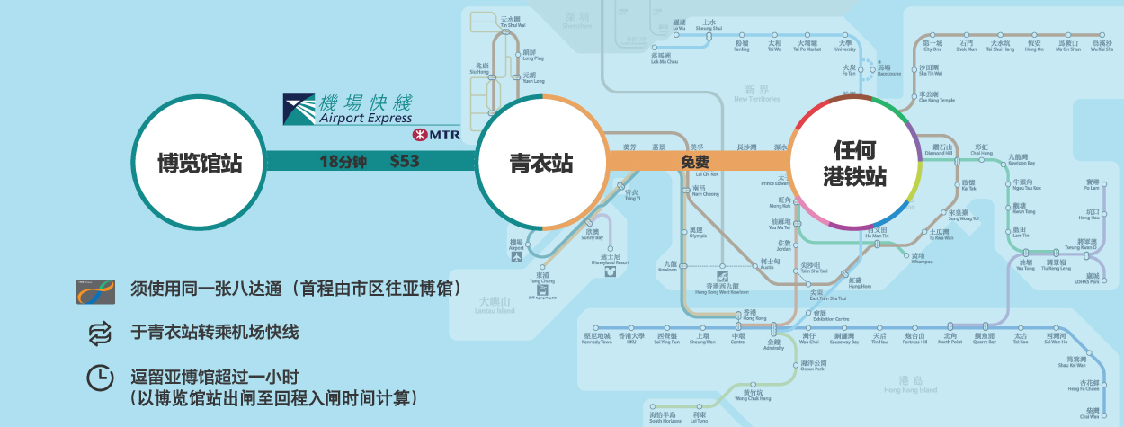 - 乘客须使用同一张八达通并逗留亚博馆超过一小时。车费优惠将于回程出闸时退回。